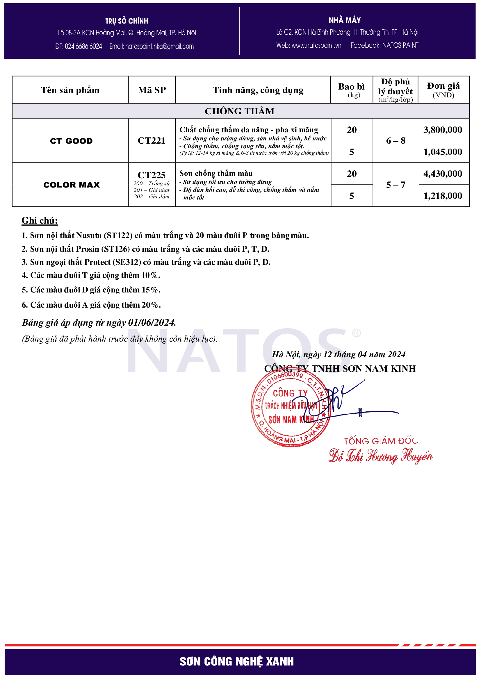 Bảng giá sơn NATOS 2024